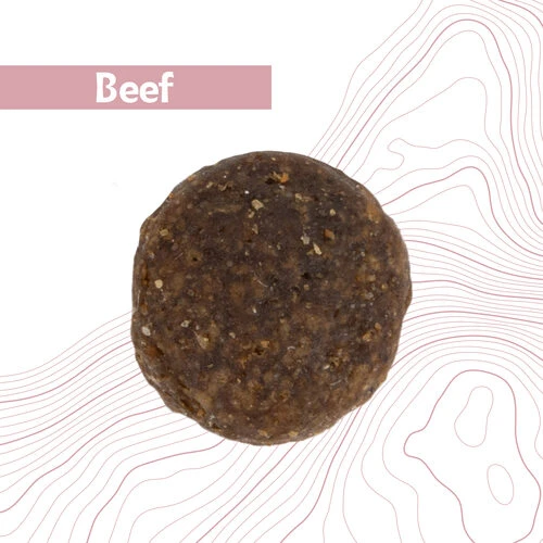 - Beef: beef 57% (fresh beef 20%), potato, peas, beef fat, sweet potatie, salmon oil, carrots, apples, sugar beet, vitamins and minerals, milk thistle, dandelion, rosa canina, hibiscus, rosemary, Yucca schidigera, glucosamine sulphate, chondroitin sulphate.