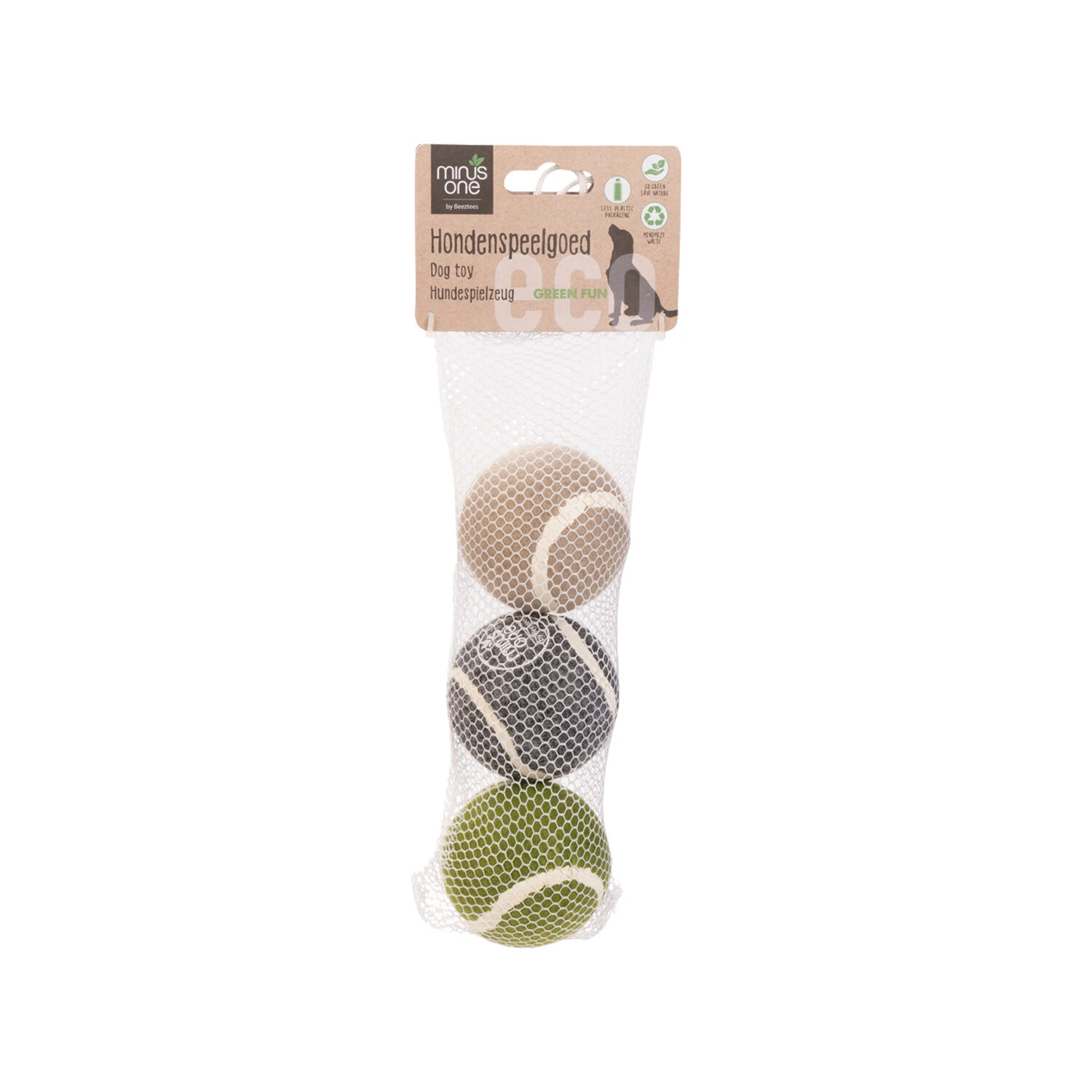 The Minus One line from Beeztees contributes to a more sustainable world by offering environmentally friendly products. For example, the tennis balls are made of REPREVE felt and natural rubber. In addition, as little plastic as possible is used in packaging and the paper contains the FSC quality mark.