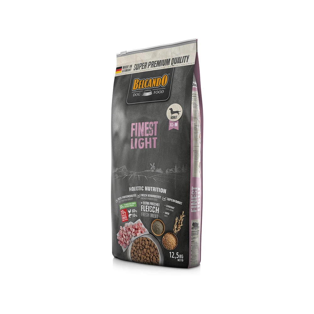 The Belcando Finest Light is a specialised diet formulated for senior dogs and less active four-legged companions. The delectable combination of duck and liver enhances your dog’s appetite, while the inclusion of oats and a high fibre content promotes a sense of satiety and aids in maintaining or reducing body weight. With its controlled protein and fat levels, it is an ideal choice for older dogs or pets with low activity levels. The reduced levels of phosphorus and sodium contribute to easing the strain on the kidneys.