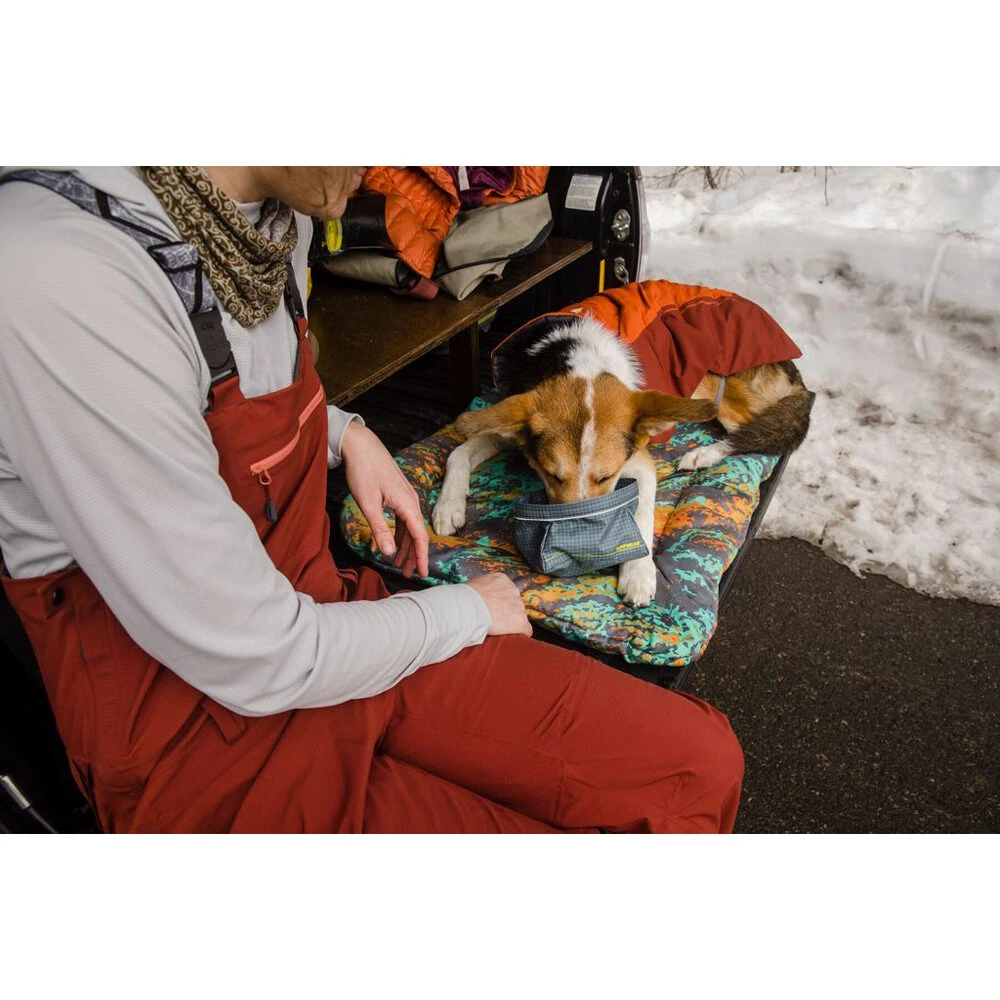 Give your dog a comfortable place to lay down while driving with the Ruffwear Basecamp Dog Bed. It is a soft dog bed that is easy to roll up and bring with you. It has a filling of recycled polyester on the inside and a soft microsuede fabric on the outside that is easy to clean. The corners are reinforced and the bed is the right size for a crate. The ideal dog bed for when you are on the go!