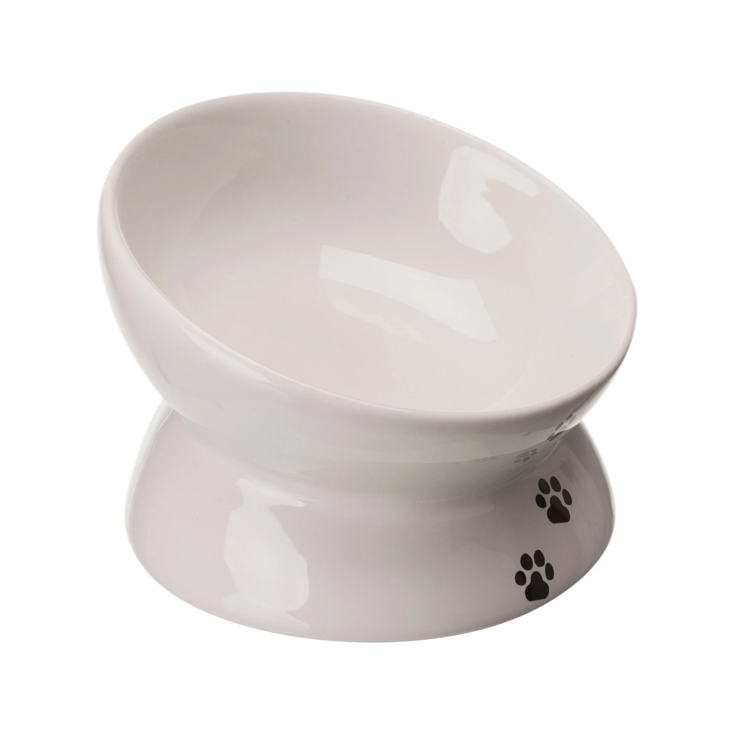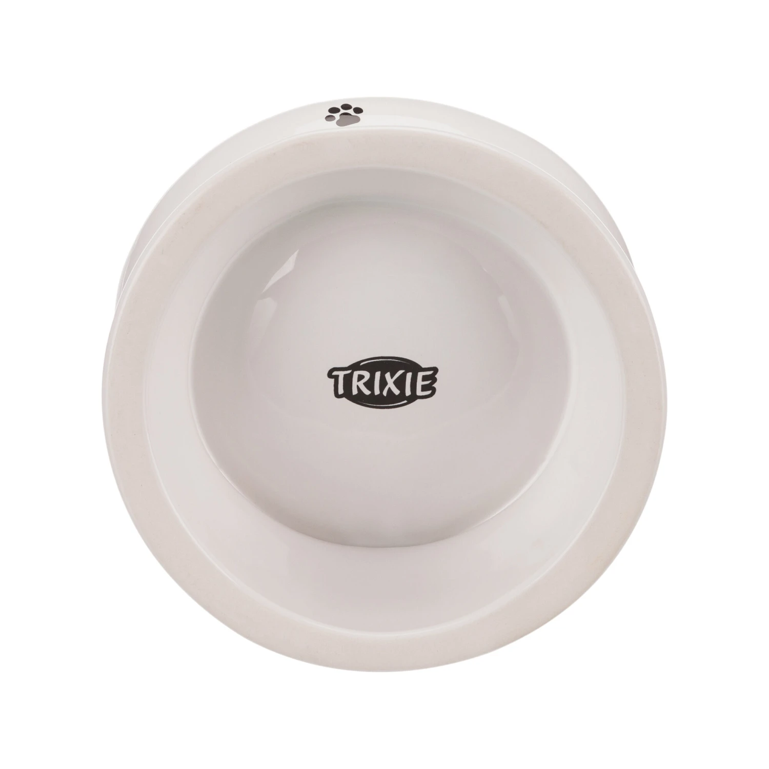 This ceramic and ergonomic food and water bowl from Trixie ensures that your dog or cat can eat or drink responsibly. The white food and water bowl has a nice design with paw prints on the front. The bowl is elevated, so that it is not directly on the ground.